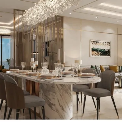 Elegant 4 BHK apartments (3,400 sq. ft.) with luxury finishes, state-of-the-art kitchens, panoramic views, and amenities starting at ₹8.00 Cr.